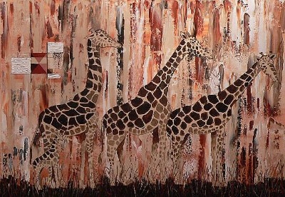 Spachteltechnik auf Leinwand mit dem Thema: "Höhlenmalerei".