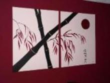 Hier noch ein paar Fotos von Ihren Werken: Zwei Bilder in Eins, passend zur Tapete gemalt in den gleichen Farben.